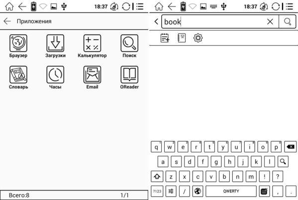 Из системы вырезаны практически все сторонние приложения, и нет даже доступа к магазину Google Play. Так что, если вам потребуется установить какое-нибудь приложение, придется делать это вручную – скачивать APK с интернета на компьютер и подключать к нему книгу по проводу. Об этом, к слову, прямо сказано в инструкции по эксплуатации.