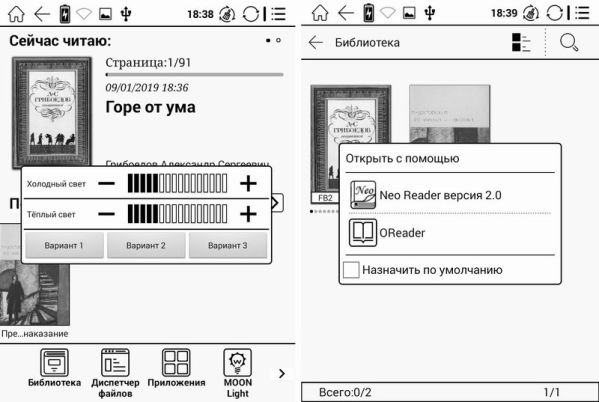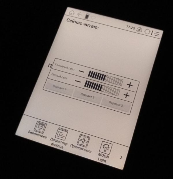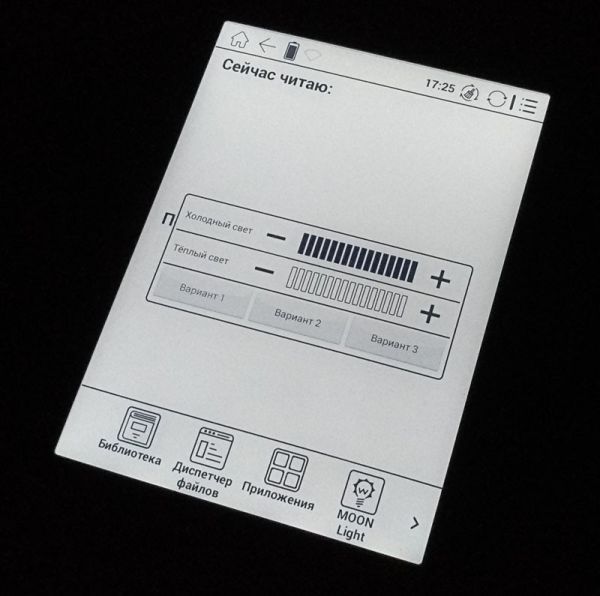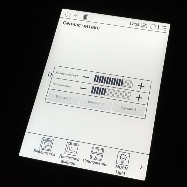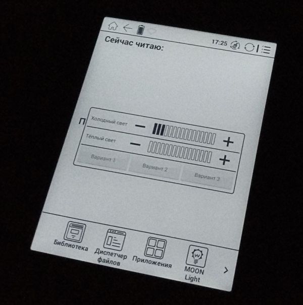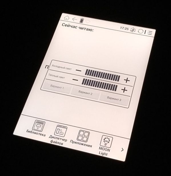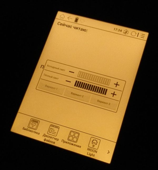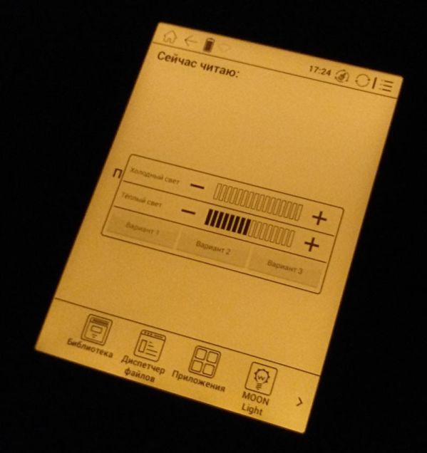 Если оригинальная Moon Light заливает экран молочно-белым холодным светом, с уходом в синие тона при максимальной яркости, то Moon Light+ предлагает уже два варианта свечения – теплый и холодный. Их можно и комбинировать, и использовать по отдельности, добиваясь оптимально подходящего цвета. Внедрение теплого света позволило снизить нагрузку на глаза без снижения уровня комфорта при чтении.