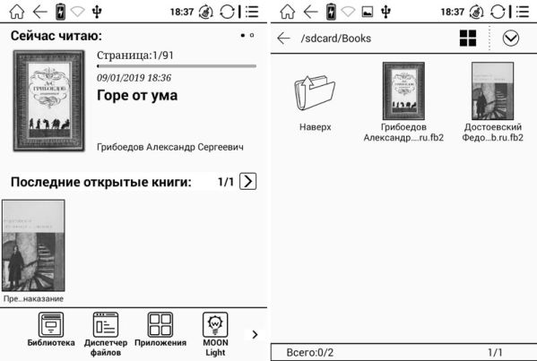 — поддерживаемые файлы: TXT, HTML, RTF, FB2, FB2.zip, FB3, MOBI, CHM, PDB, DOC, DOCX, PRC, EPUB, JPG, PNG, GIF, BMP, PDF, DjVu;