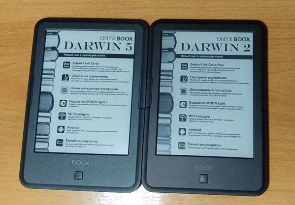 Давайте немного поностальгируем и сравним дизайны книг Darwin 5 и Darwin 2. Как видите, отличий нет, и это хорошо. Разве что, второе поколение исполнено в чертом цвете, но такой же оттенок доступен и для пятой ревизии.