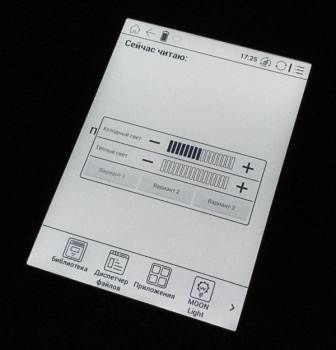 Если оригинальная Moon Light заливает экран молочно-белым холодным светом, с уходом в синие тона при максимальной яркости, то Moon Light+ предлагает уже два варианта свечения – теплый и холодный. Их можно и комбинировать, и использовать по отдельности, добиваясь оптимально подходящего цвета. Внедрение теплого света позволило снизить нагрузку на глаза без снижения уровня комфорта при чтении.