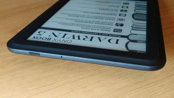 Первое, что отметим сразу же – книга заметно тоньше заявленных 8 миллиметров и легче 182 граммов. Ее вес не ощущается вообще, и неизвестно, что тому причина, но, как говорится, это не баг, это фича. Незначительный вес позволяет пользоваться книгой в течение долгих часов, к тому же, если приноровиться, то ею вполне можно управлять одной рукой – экран-то сенсорный.