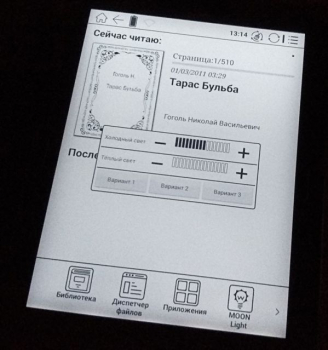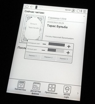 К недостаткам Moon Light+ в данной книге хотелось бы отнести пересветы по периметру дисплея – видны тени от светодиодов. Недостаток носит сугубо эстетический характер и чтению ни в коей мере не мешает. Более того, тени перестаешь замечать практически сразу же.