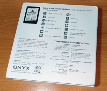 Информацией об электронной начинке Onyx Boox Monte Cristo 4 можно разжиться, во-первых, на сайте производителя, где она представлена в полной мере, во-вторых, прямо на коробке. Если двух источников окажется мало, загляните в инструкцию – там вы тоже найдете искомые сведения. Перечислим их и здесь.