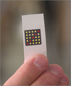 Нужно всего лишь напечатать последовательности ДНК на клочках бумаги, лиофилизировать их (высушить с помощью заморозки) и хранить при комнатной температуре. При необходимости ДНК «включается», если бумагу просто полить водой — как обычный порошковый суп или кашу. Тогда, если в жидкости присутствует опасный патогенный организм (например, фрагмент вирусного РНК Эболы), бумага меняет цвет. Ученые доказали эффективность новой технологии, разработав тест на вирус Эбола всего за 12 часов и потратив на необходимые материалы лишь 21 доллар. Для теста потребуется полчаса, а обойдется один датчик не дороже нескольких центов.
