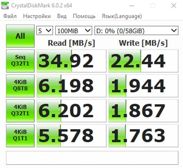 Если использовать USB 2.0, наиболее распространенный в нашей стране интерфейс, то скоростные показатели упадут до 35 МБ/с при чтении и 22 МБ/с при записи. Опять же, это очень хороший результат для интерфейса, которому уже 20 лет от роду. На такое способна далеко не каждая флешка.