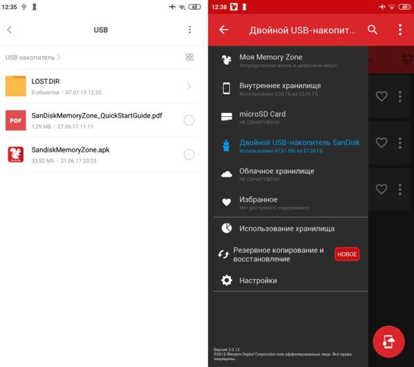 В любой из программ SanDisk Ultra Dual Drive m3.0 отображается в Android так же, как и внутренний накопитель, и копировать на него (или с него) файлы можно классическим алгоритмом «копировать-вставить». Запаса скорости вполне хватает, чтобы запускать прямо с него фильмы в формате Full HD и музыку в несжатом формате FLAC. Замеры скорости показали, что при подключении конкретно к нашему смартфону скорость чтения флешки достигает 34 МБ/с, а скорость записи превышает 22 МБ/с.
