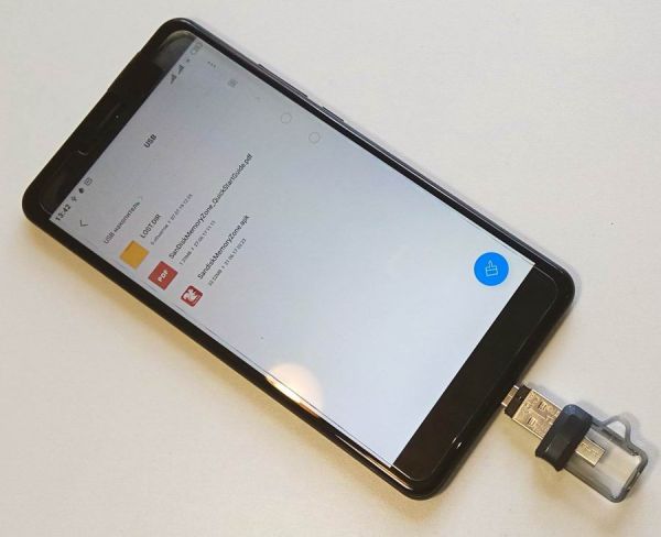 От слов к делу. Мы протестировали оба недокументированных способа подключения SanDisk Ultra Dual Drive m3.0 к смартфону на редакционном Xiaomi Mi Max 2. Как можете видеть на фотографии, адаптера размером с 50-копеечную монету вполне достаточно, чтобы флешка определилась даже на смартфоне, под который она изначально не заточена. Что немаловажно, при таком типе подключения скорость передачи данных не меняется и остается на уровне 35 МБ/с при чтении и 22 МБ/с при записи. Опять же, никакие дополнительные программы для работы с накопителем не потребуются, так что SanDisk Ultra Dual Drive m3.0 доказал свою универсальность.