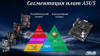 Как и 30 лет назад, главным направлением своей деятельность тайваньская компания считает производство материнских плат. Сейчас в её ассортименте сотни моделей карт, которые можно разделить на 5 сегментов. Материнские платы ROG MAXIMUS IX созданы для энтузиастов и тех, кто привык к самому лучшему.