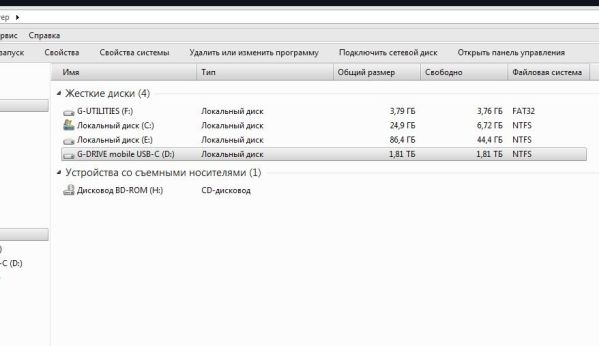 По умолчанию на накопителе есть два раздела – 4 Гб FAT32 для Windows и остальной объем HFS+ для MacOS. На 4-гигабайтной партиции есть ПО, которое решит любые сложности в использовании винчестера под обеими операционками – там лежат драйвера под Windows, которые позволят системе видеть HFS-диски прямо в «Проводнике», и это действительно работает. Единственный момент – такой раздел Windows определяет как NTFS, но это уже нюансы, притом никому не нужные. Если же компьютеров Apple в вашем распоряжении нет, то смело форматируйте винчестер программой G-Technology Format Wizard. Просто жмите несколько раз Next, после чего дождитесь окончания процесса форматирования, и на выходе у вас получится единый раздел а файловой системе exFAT, распознаваемой современными версиями Windows. В нашем случае все заработало на Windows 7 и 10. Тут отметим, что форматирование уничтожает все данные на винчестере, поэтому или скопируйте все заранее, или отформатируйте его сразу после покупки.