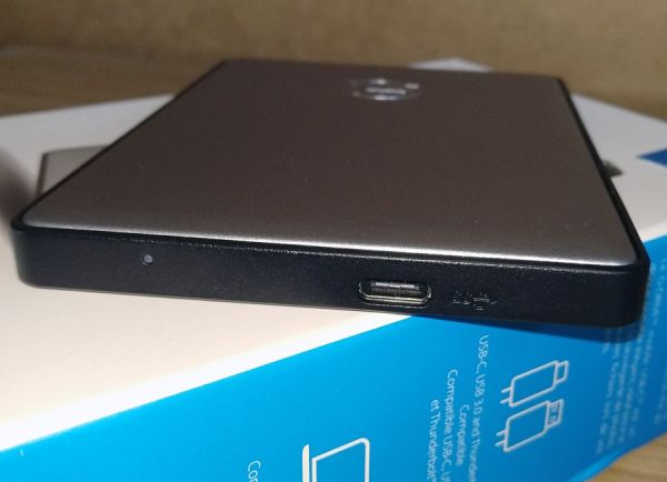 Торцы винчестера дополнены окантовкой их прочного некрашеного пластика черного цвета. Она убережет корпус от вмятин и царапин, к тому же она отлично дополняет дизайн устройства. Единственный интерфейсный разъем здесь – это USB-C, и он выведен на нижний торец. Рядом с ним расположен небольших размеров круглый светодиод белого цвета. Светит он приглушенно периферическим зрением его мерцание не увидеть, так что отвлекать он не будет совершенно точно.