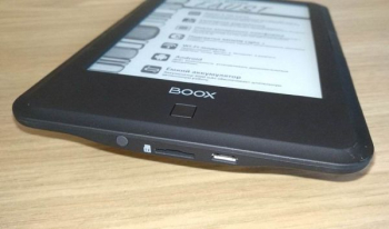Сзади у книжки нет ничего, кроме надписей, сверху находится рифленая кнопка включения, а снизу – интерфейсы microUSB 2.0 и microSD. К дизайну и расположению элементов никаких вопросов не возникает – устройство выглядит стильно и современно, им хочется пользоваться именно без чехла.