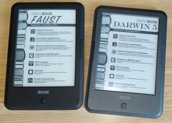 На снимке видно, что Faust и Darwin 5 максимально похожи внешне. Шасси у них одно. Но есть определенные различия в мелочах – так, Darwin 5 получил немного иной окрас корпуса, да и текстура пластика у него чуть иная. Помимо этого, можно вспомнить различное тиснение на крышке чехла-обложки (материалы, как мы уже отметили, используются идентичные).