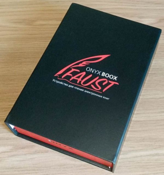 Названная в честь всемирно известного произведения Иоганна Гете, книжка Onyx Boox Faust поставляется в очень плотной картонной коробке, весьма увесистой и внешне вполне симпатичной. Обычно так оформляют коробки с более дорогими устройствами. В данном случае Onyx отошла от своей традиции украшать упаковку изображениями людей, в честь которых она названа (а ведь на крышке вполне мог находиться портрет Гете), и просто оформила ее в сочетание черного и красного цветов. С учетом названия, это очень символично, а почему – поймете после прочтения «Фауста».