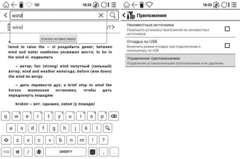 В списке дополнительных приложений числятся словарь, часы, калькулятор, браузер и клиент электронной почты. По нашему мнению, из этого нужен лишь словарь, который пригодится для поиска перевода и значений новых незнакомых слов, попавшихся в книге – к нему можно обращаться непосредственно из приложений для чтения, которых здесь два. Что касается браузера и электронной почты, то пользоваться ими неудобно – скорости обновления экрана не хватает, чтобы комфортно смотреть страницы или быстро печатать на экранной клавиатуре, так что лучше использовать для этого смартфон или планшет. По этой же причине не нужен и модуль Wi-Fi. Тут стоит внести ясность: перечисленные компоненты в ридере вообще не требуются, потому что это узкоспециальное устройство для чтения книг, заточенное именно под это. Не нужно отвлекаться на бесполезные социальные сети – оставьте это тем, кто не любит и не может читать ничего длиннее поста или комментария.