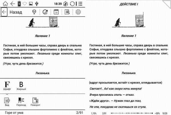 В Darwin 6 используется электрофоретический дисплей, то есть экран на так называемых «электронных чернилах». В отличие от Darwin 5, здесь используется панель с более высоким разрешением, и если на пятом поколении было очень комфортно читать даже на самых маленьких размерах шрифта, то здесь все еще лучше, плюс можно просматривать детализированные изображения. Правда, они в любом случае будут черно-белыми.