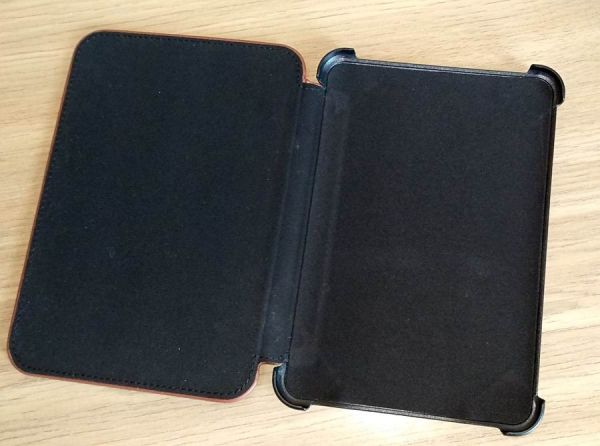 Этот материал очень мягкий, за счет чего отсутствует риск поцарапать корпус книги и тем более дисплей. Сам ридер помещается в держатели-уголки из жесткого пластика, в которых держится довольно крепко. Для придания чехлу дополнительной прочности производитель прошил его по всему периметру.