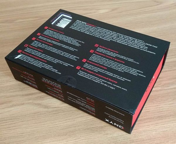 Нижняя грань упаковки содержит описание основных возможностей книги, плюс тут же расположен небольшой рендер самого устройства, а его характеристики перечислены на боковом торце коробки.