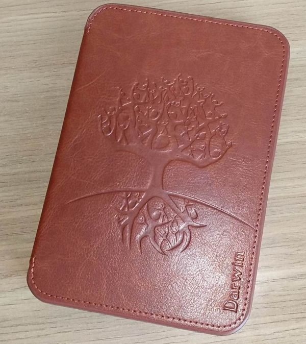 При изготовлении чехла Onyx Boox отдала предпочтение высококачественным материалам – наружная его часть покрыта текстуурированной эко-кожей с тиснением в виде древа эволюции, а внутренняя поверхность отделана материалам черного цвета, на ощупь похожего на бархат.