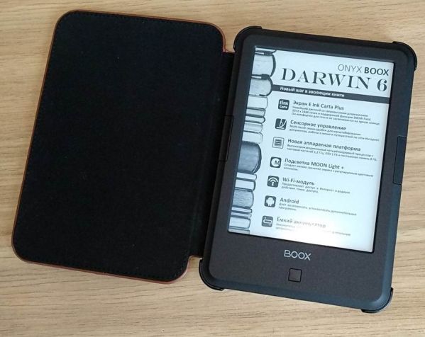 Darwin 6 можно отнести к сегменту электронных книг hi end за счет повышенного разрешения дисплея и современного поколения дисплея на электронных чернилах. К плюсам также можно отнести переработанную прошивку, большое количество поддерживаемых файлов и модуль Wi-Fi. Последний, впрочем, пригодится не всем – серфить в интернете на монохромном дисплее все же не совсем удобно.