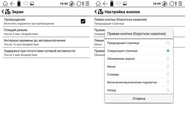 Боковые кнопки большие, по ним невозможно промахнуться, и нажимаются они хоть и мягко, но с ощутимой тактильной отдачей. Кнопка включения, наоборот, очень жесткая, чтобы книжка не включалась в сумке или портфеле от касания чем-либо.