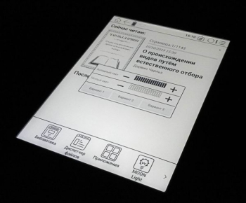 В Darwin 6 используется электрофоретический дисплей, то есть экран на так называемых «электронных чернилах». В отличие от Darwin 5, здесь используется панель с более высоким разрешением, и если на пятом поколении было очень комфортно читать даже на самых маленьких размерах шрифта, то здесь все еще лучше, плюс можно просматривать детализированные изображения. Правда, они в любом случае будут черно-белыми.
