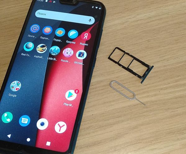 В экранном вырезе расположены фронтальная камера, разговорный динамик и сенсоры освещенности и приближения. На левом торце есть лоток под SIM-карты, справа вынесены кнопки включения и громкости, вход под наушники можно найти на верхней грани корпуса, а микрофон, основной динамик и разъем зарядки – на нижней.