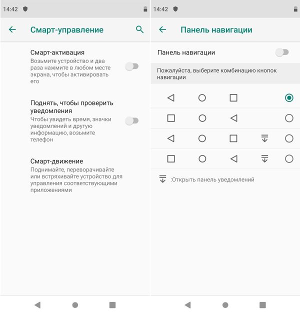 В системе есть определенный тюнинг – в частности, смартфон умеет реагировать на то, что его берут в руку, и включать дисплей, плюс у него есть система управления жестами. Помимо этого, можно менять очередность расположения сенсорных кнопок управления, что повышает общее удобство пользования гаджетом.