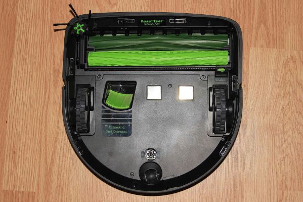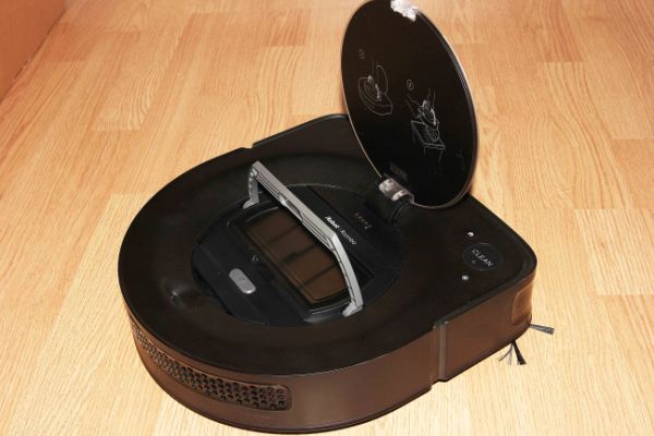 За фильтрацию отвечает HEPA-фильтр, установленный внутрь контейнера. Его конструкция позволяет улавливать мельчайшие частицы пыли, клещей и микробов. По периметру крышки располагается светодиодное кольцо, по цветовой индикации которого можно узнать о состоянии робота: убирается он, следует на базу или требует помощь. На одном из углов находятся три клавиши управления: «Clean», «Spot» и «Home». «На носу» разместили инфракрасный датчик, а сзади – камеру, с помощью которых, робот ориентируется в пространстве.