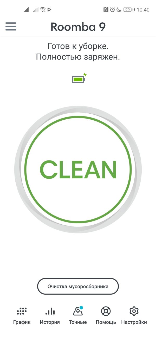 Уборка должна быть незаметной для пользователя, и Roomba s9+ с этим справляется, ведь его можно запрограммировать на уборку по расписанию, задав время и конкретные комнаты. Можно и вручную его запустить, просто нажав кнопку «Clean» на главном экране. Интересно, что если у вас есть другое устройство iRobot, например, моющий Braava jet m6, то приложение предложит сразу после завершения сухой уборки, начать влажную.