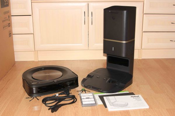 Робот упакован в большую квадратную коробку, большую часть которой занимает та самая станция Clean Base. В комплект также включены: запасные мусорный пакет, HEPA-фильтр и боковая щетка, а также шнур питания. Аппаратных «виртуальных стен» не предусмотрено, поскольку ограничивать передвижения робота можно с помощью приложения.