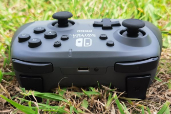 Стоит обратить внимание на несколько улучшений, по отношению к PRO-контроллеру, которые сделала Hori: системные кнопки значительно сильнее выступают из корпуса и нажимать их удобнее, вокруг крестовины находится круглое углубление, чтобы было удобнее совершать круговые движения, а «курки» имеют вогнутую поверхность, поэтому пальцы с них не соскальзывают. Все кнопки покрыты противоскользящим напылением, а «шляпки» стиков прорезинены. Ход клавиш средний, все нажатия четко фиксируются.