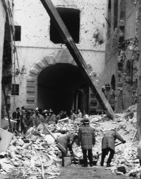 Пожарные после теракта разбирают завалы во дворе галереи Уффици. 27 мая 1993 года Фото: Giovannozzi Torrini / AP