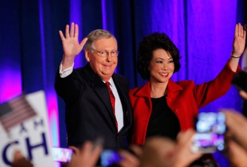 Глава республиканцев в Сенате Митч Макконнелл и его жена Элейн Лан Чао Фото: John Sommers II / Reuters