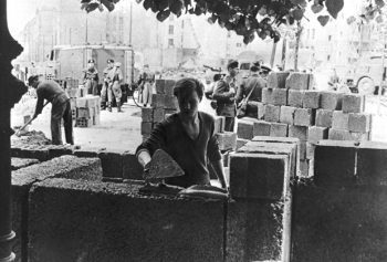 Рабочий в ГДР возводит Берлинскую стену, август 1961 год Фото: AP
